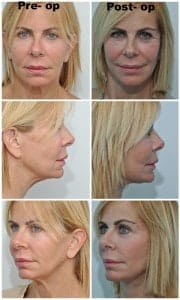 Bands on the necks of young patients many times are so remarkable that surgery is needed. The patient we are showing today is fit and in good health. Her neck shows a noticeable band secondary to relaxation of the neck muscle. This muscle, in medical terminology called platysma (plah-TIZ-mah), loosened up and created this noticeable band. In medical terms, this is referred to as a “turkey-gobbler neck deformity.” In order to correct this aesthetic problem, a neck lift is necessary. It is performed with a small incision under the chin that turns inconspicuous in a short period of time; this incision allows direct access to the bands, which are then sutured in the midline and separated from their extension toward the lower part of the neck. In this way, by later pulling the skin to the sides, behind the ears, the angle between the face and the neck can be fully restored. The rejuvenation that this surgery achieves for the patient is remarkable. Sometimes fat also needs to be removed from the neck, in order to define the jaw line. This procedure can also be extended up and combined with a facelift when necessary. This surgery is usually very effective and can restore the self-esteem that patients often lose because of their facial aging. Aging of the neck is very difficult to improve without surgery. The procedure that we are describing is very effective and can be performed under local anesthesia, if the patient wishes to do so.